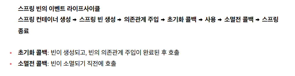 스프링 빈은 객체를 생성하고 의존관계 주입이 다 끝난 후, 데이터를 사용할 수 있는 준비가 완료된다.