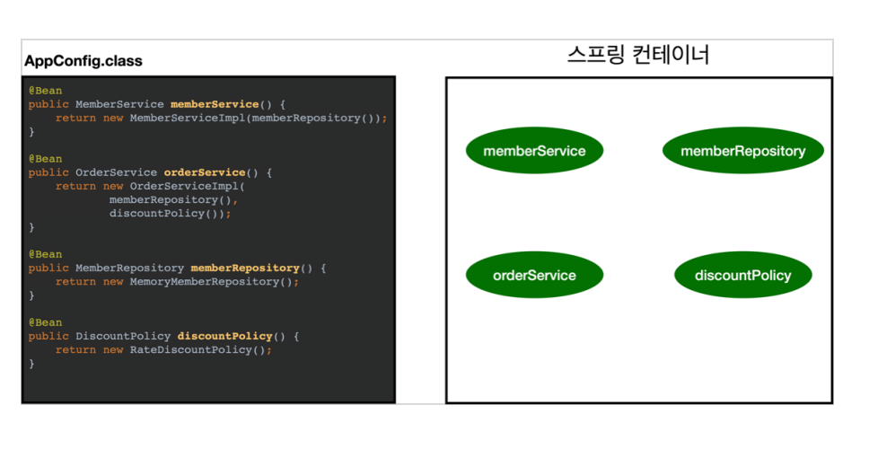 -> 설정 정보를 기반으로 애플리케이션을 구성하는 부분과 실제 동작하는 부분을 명확하게 나누는 것이 이상적이지만, 개발자 입장에서 스프링 빈을 하나 등록할 때 @Component 만 넣어주면 끝나는 일