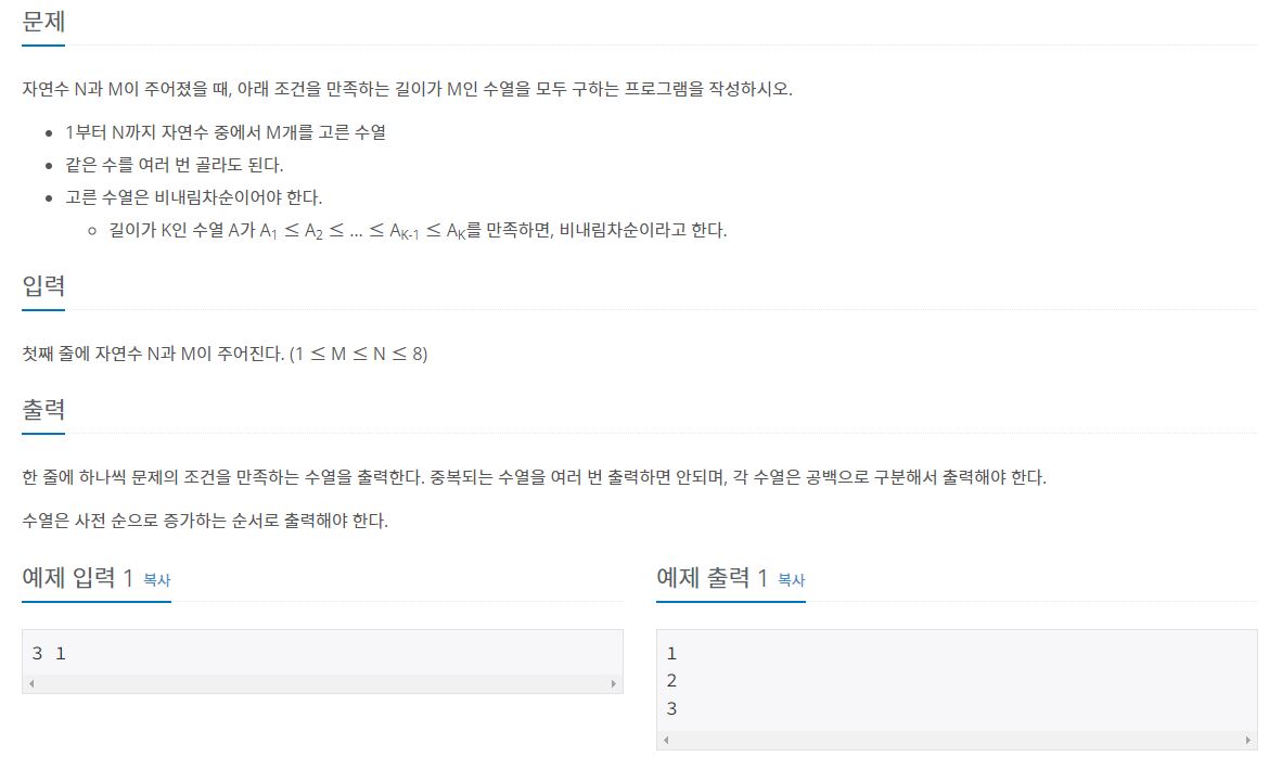 | 백준 15651번 - N과 M (3) - C++ (1) | 2022.01.13 |